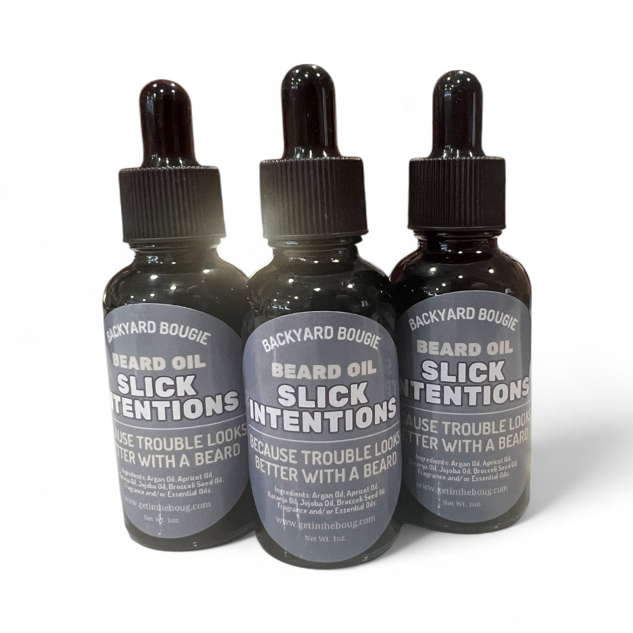 This ain’t your average beard oil, it’s Slick Intentions. Smooth, bold, and just the right amount of dangerous, this luxe blend brings together lavender, vanilla, woodsy depth, and musk for a scent that turns heads (and maybe clouds a little judgment). Packed with Argan, Apricot, Karanja, Jojoba, and Broccoli Seed Oil, it’s built to soften, nourish, and tame your beard without making it greasy. Translation? Your beard gets the VIP treatment, and you get the double-takes. Win-win.