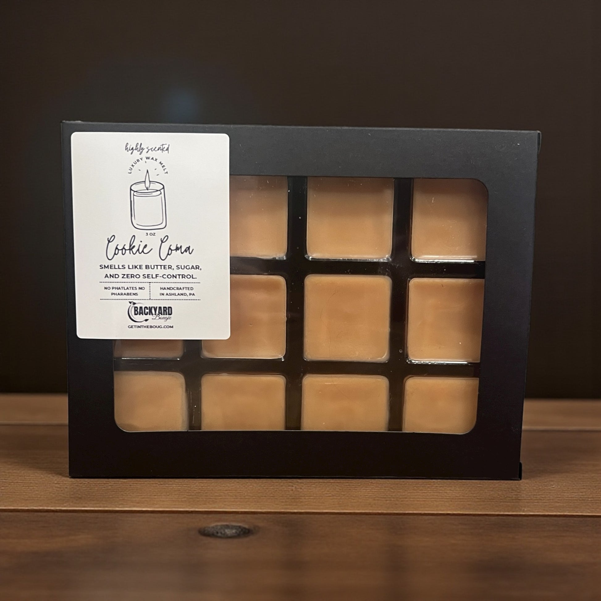 Cookie Coma — the wax melt that smells like you’ve been slaving away in the kitchen all day when, let’s be honest, you’ve just been sniffing this thing and living your best lazy life. Packed with the warm, cozy scent of fresh-baked sugar cookies, this melt delivers all the buttery vanilla goodness of grandma’s kitchen… without the dishes, judgment, or calories. Light it up and let your space smell like sweet, golden perfection because who needs moderation when it comes to cookies or wax melts?