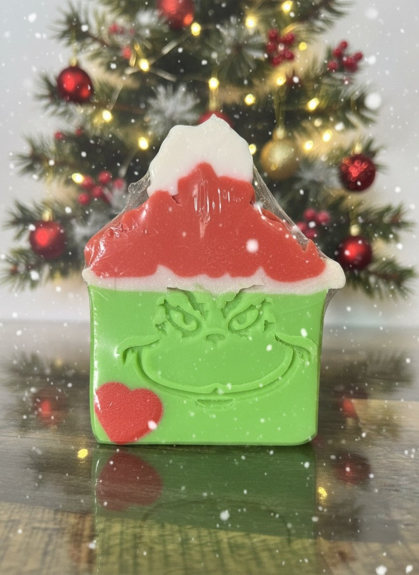 Get in the holiday mischief with our Grinch-inspired soap! Molded in that famous fuzzy green shape with a face only Whoville could love, this bar might look grumpy, but it lathers like a dream and smells like festive joy. Crafted with a skin-loving blend of tallow, Manteca, coconut oil, olive oil, and just enough sass to make even the Grinch grin.