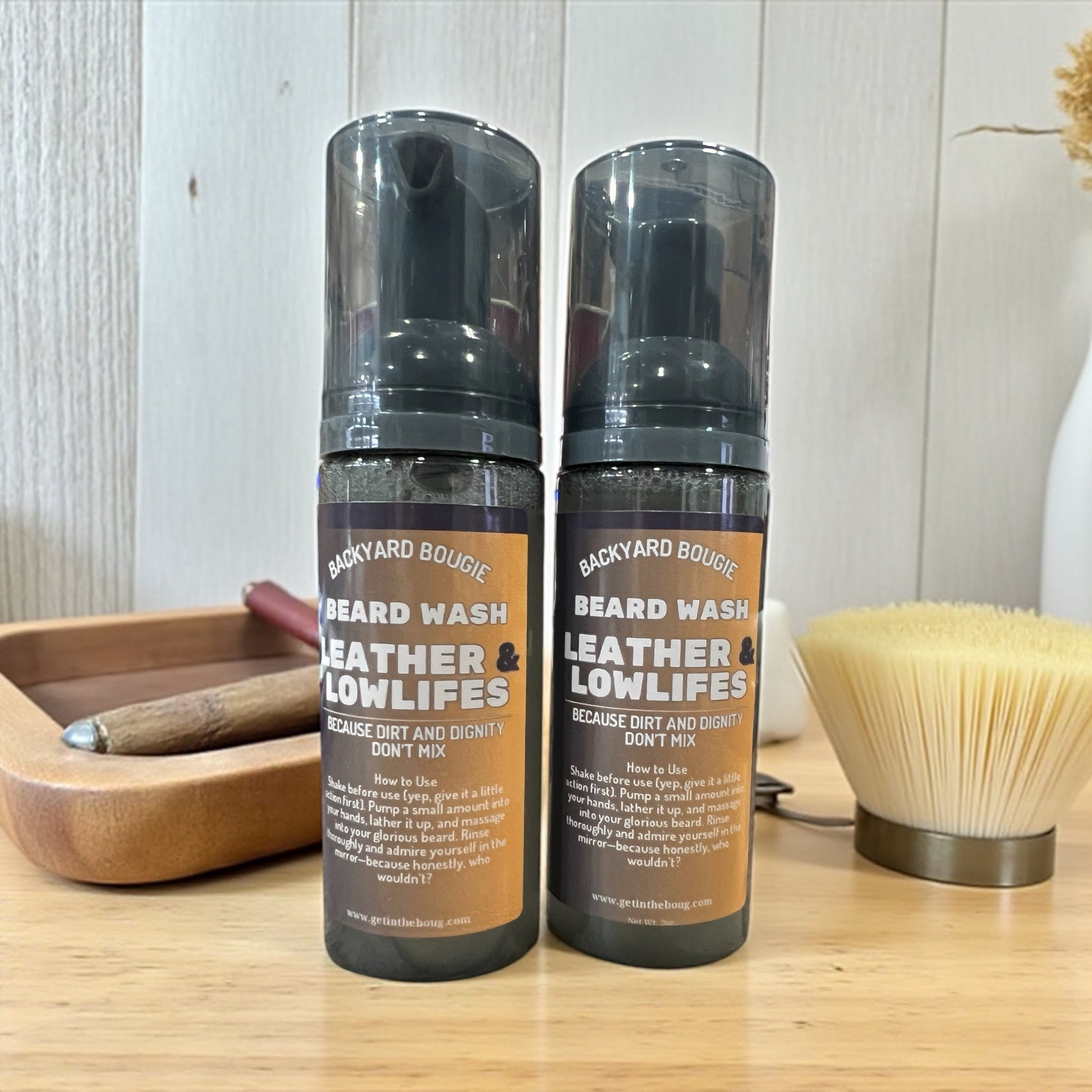 Beard looking a little rough around the edges? Meet Leather & Lowlifes Beard Wash—the rebel of grooming routines. Packed with aloe vera, panthenol, and vitamin E, this wash is tough enough to kick grime to the curb but gentle enough to keep your face fuzz soft, touchable, and dangerously good-looking. The scent? A bold mix of leather, spice, and woods that screams sophistication with a side of seduction. Pair it with our Leather & Lowlifes Beard Conditioner and Beard Oil for the ultimate bad-boy-meets-bougie combo.