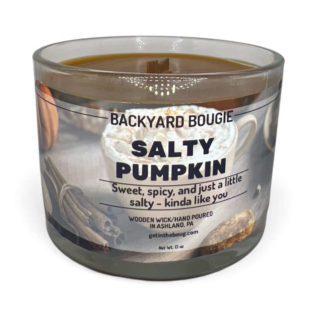 Salty Pumpkin the candle that sums you up in one perfect scent: warm, sweet, a little spicy, and unapologetically salty. This hand-poured soy blend candle features a crackling wooden wick and a mouthwatering mix of pumpkin spice, clove, vanilla bean, patchouli, oak, and salted caramel. It’s the scent of fall coziness, wrapped in sass and sprinkled with just enough salt to keep things interesting. Light it up and let your space smell like the main character of autumn — minus the drama and overpriced lattes.