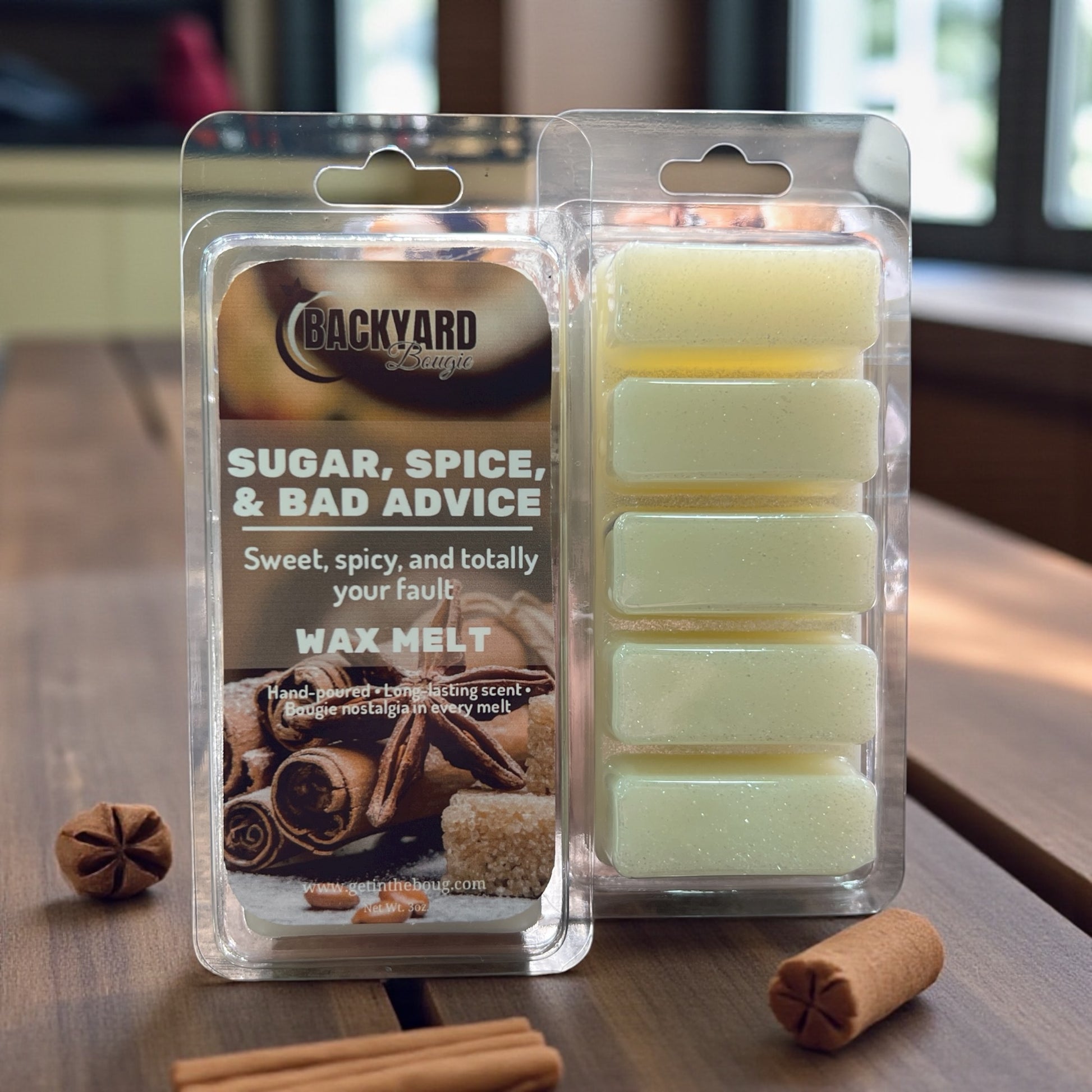 Life’s all sugar, spice, and bad advice, and this wax melt smells exactly like that. Warm apple, brown sugar, butter, and syrup blend with cinnamon, clove, and tonka bean to create a scent that’s part homemade dessert, part impulsive decision. Cozy enough to fool people into thinking you baked, and bold enough to hide the smell of chaos and regret. Sweet, spicy, and dangerously addictive just like your favorite mistakes. Perfect for gifting, coping, or filling your home with the illusion of stability.